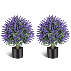 Vitalismo Artificial Topiaries Lavender Ball Trees 2 Pack – 21.6 Inch Tall Faux Plants Indoor Potted Bushes – Faux Boxwoods Plants for Outdoor Indoor Garden Front Porch Home