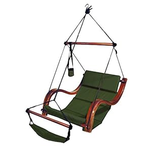 New MTN Deluxe Beach Wood Hammock Swing Lounge Chair w/Footrest Cup Holder Green