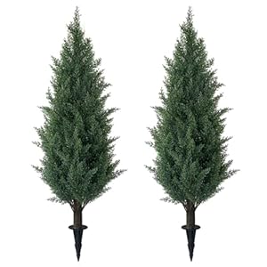 3FT Artificial Cedar Topiary Trees with Ground Spike, UV Resistant Artificial Bushes, Set of 2 Faux Cypress Plants Faux Shrubs for Outdoor Indoor Front Porch Garden