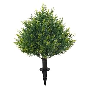 JoyPower Artificial Cedar Topiary Ball Tree with Ground Spike, 16” Fake Cedar Plant UV Resistant Artificial Shrubs, Faux Cypress Plant Fake Bushes for Front Porch Garden Indoor Outdoor