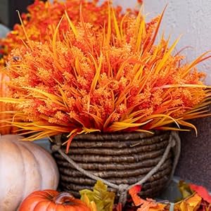 XLFAQXM Artificial Plants Flowers Grass Shrubs 8 Pack No Fade Faux Plastic Flowers Outdoor for Vases Farmhouse Garden Porch Patio Office Indoor Wedding Decoration Greenery Fake Plants
