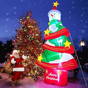 TURNMEON 12 Feet Christmas Inflatables Decorations Outdoor Christmas Tree Snowman Inflatables with LED Lights for Christmas Blow Up Yard Decor with Tethers Stakes for Outdoor Lawn Garden Party Holiday