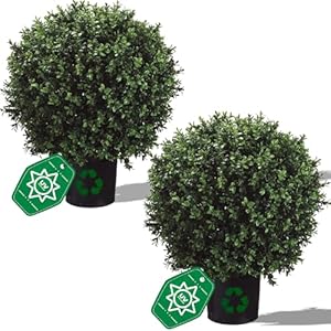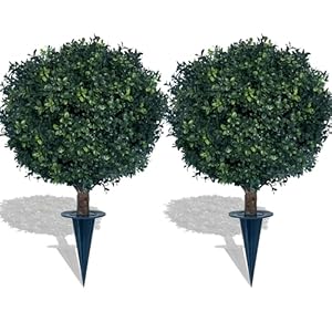 kyesyes Artificial Boxwood Ball Bush 27″ Tree UV Resistance Rated with Spike. Easy to Push in The Ground.Plant Looks Great in a Planter Anywhere. Indoor/Outdoor Decor 2 Pack