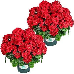QIANYUN Artificial Topiary for Outdoors- 20” Potted Plant Fake Geraniums Bush-UV Resistant Artificial Outdoor Plant for Front Porch, Garden, Yard, Patio Decor