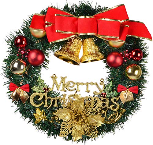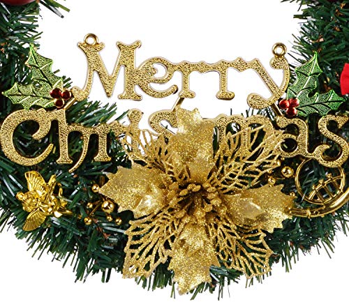 【Beautiful and Full Spruce Wreath】Wreath with a variety of Christmas Ornaments decorations,such as Pine Cones,Big red bow,Red Berries,poinsettia,Snowflakes,golden Ball,Christmas wreath bring holiday atmosphere for whole circle of relatives.