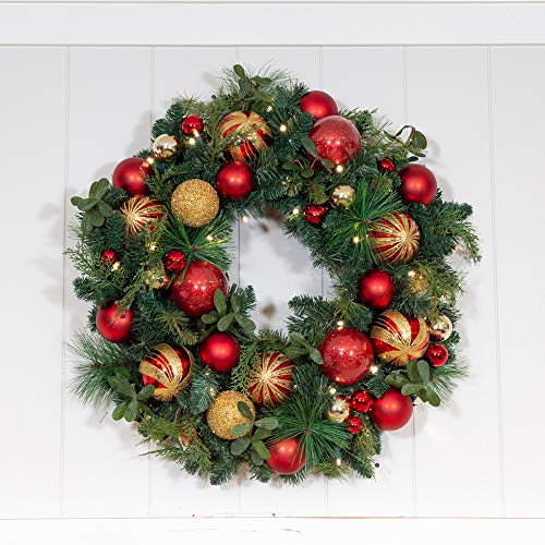 ![[30 Inch Artificial Christmas Wreath] - Christmas Classic Collection - Red and Gold Decoration - Pre Lit with 50 Warm Clear LED Mini Lights - Includes Remote Controlled Battery Powered Timer](https://m.media-amazon.com/images/I/61r9oe+F7aL.jpg)