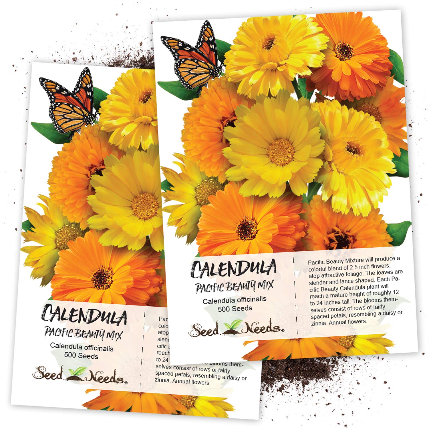 Quality Calendula seeds packaged by Seed Needs. Intended for the current and the following growing season. Packets are 3.25″ wide by 4.50″ tall and come with a full colored illustration on the front side, in addition to detailed sowing instructions on the reverse.
