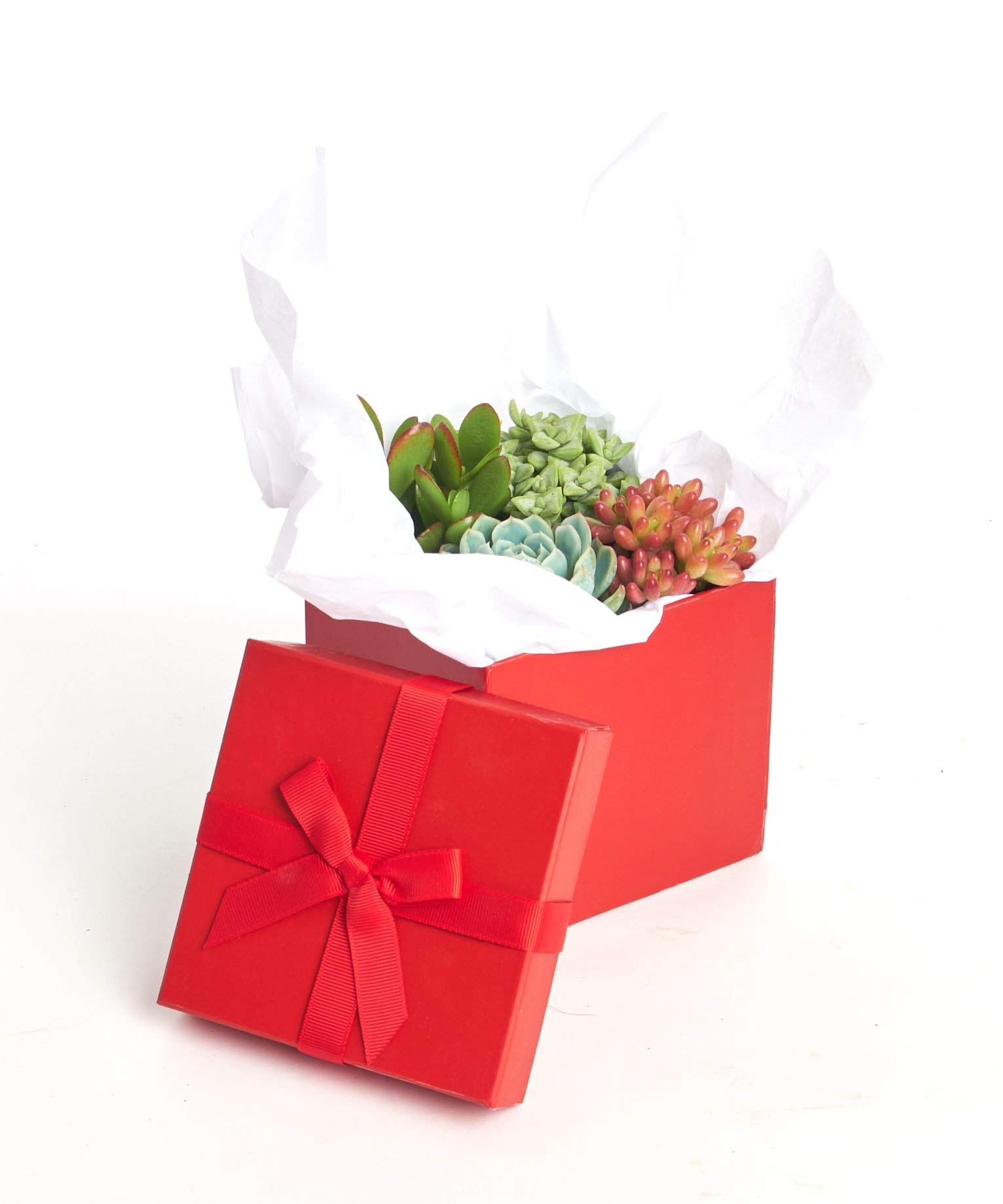 INCLUDED IN PURCHASE | (5) Hand selected cacti & other succulent varieties. Each succulent may vary from pictures shown. Succulents come in 2 ” square pots fully rooted in soil. Comes in a Gift Box