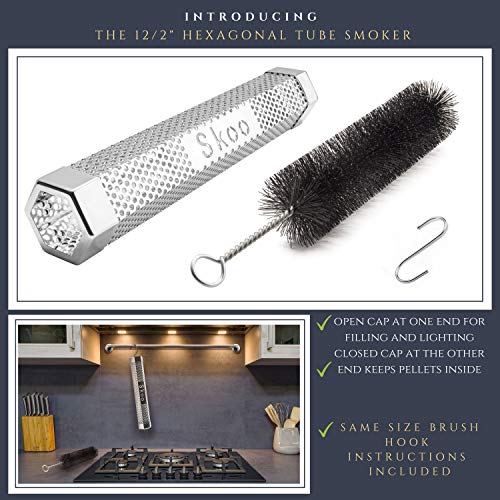 INTRODUCING THE UNIQUE DESIGN: Skoo 12″ Hexagonal Pellet Smoker Tube Set – If you’ve been searching for a Versatile Barbeque Smoker Kit, then your search is over! That’s because our product works perfect in any grill, gaz, electric or charcoal as well, which means that that you do not want another smoke box and you’ll be able to get the job done, every time, guaranteed! – For Smoked Pork, Ribs, Cured Meat, Hot Dogs, Sausages, Chicken, Cheese, Lamb, Fish, Nuts and more.