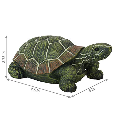 IDEAL FOR BACKYARD OR PATIO: Lawn figurine is 9.5 inches long x 5 inches wide x 3.75 inches tall; Weighs 1 pound; Full length from head to end of shell: 9.5 inches; Length of shell: 8 inches