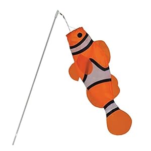 In the Breeze 4872-S — 18-inch Clownfish Windsock – 21-inch Shatterproof Wand — Hand-Held Fun for All Ages, Great for Flower Pots